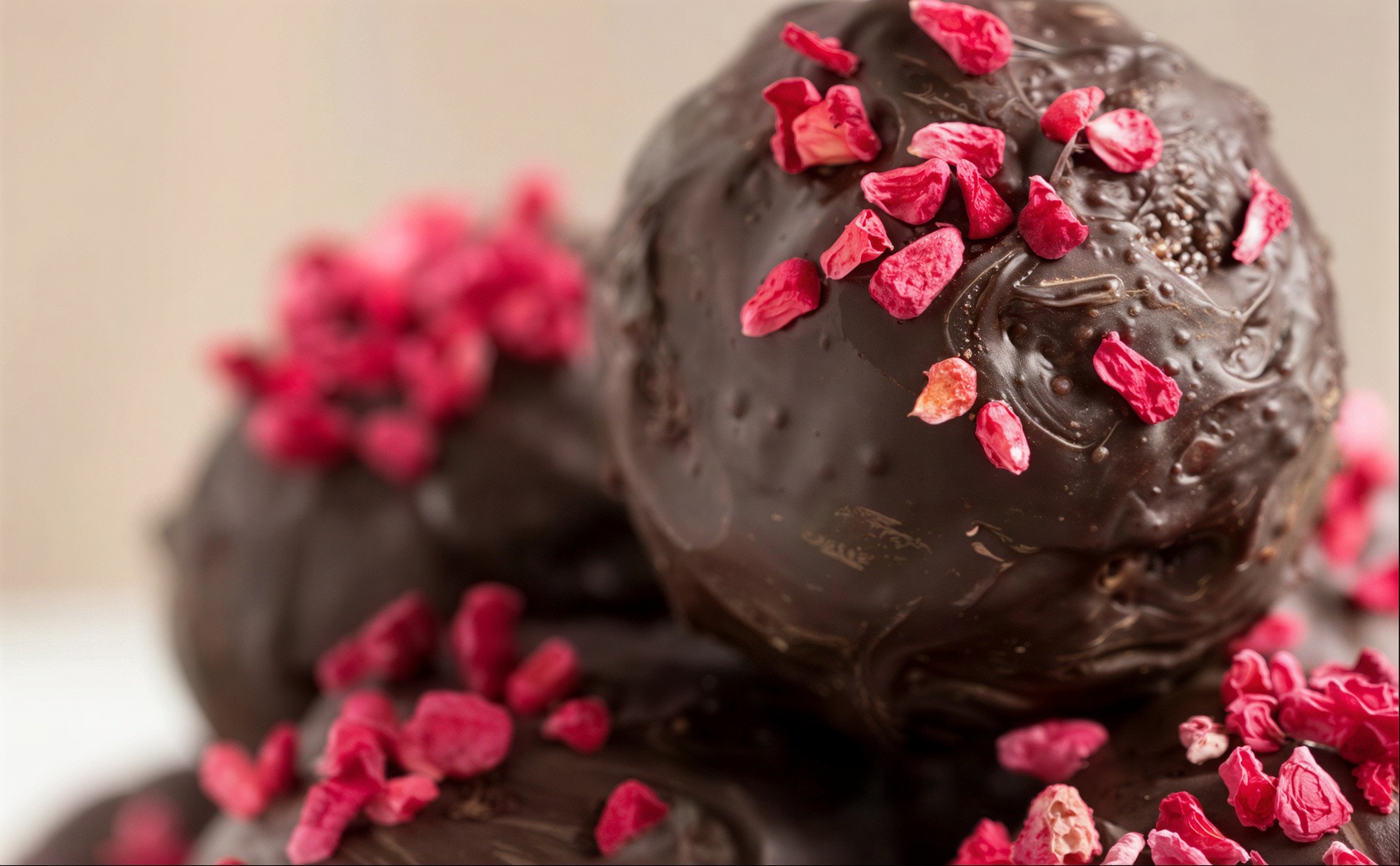 Dark chocolate brings depth, richness, and that slightly bittersweet intensity, while raspberry adds brightness and a natural tang that lifts everything. Together, they create a perfectly balanced bite that’s not overly sweet, not too rich – just deeply satisfying.