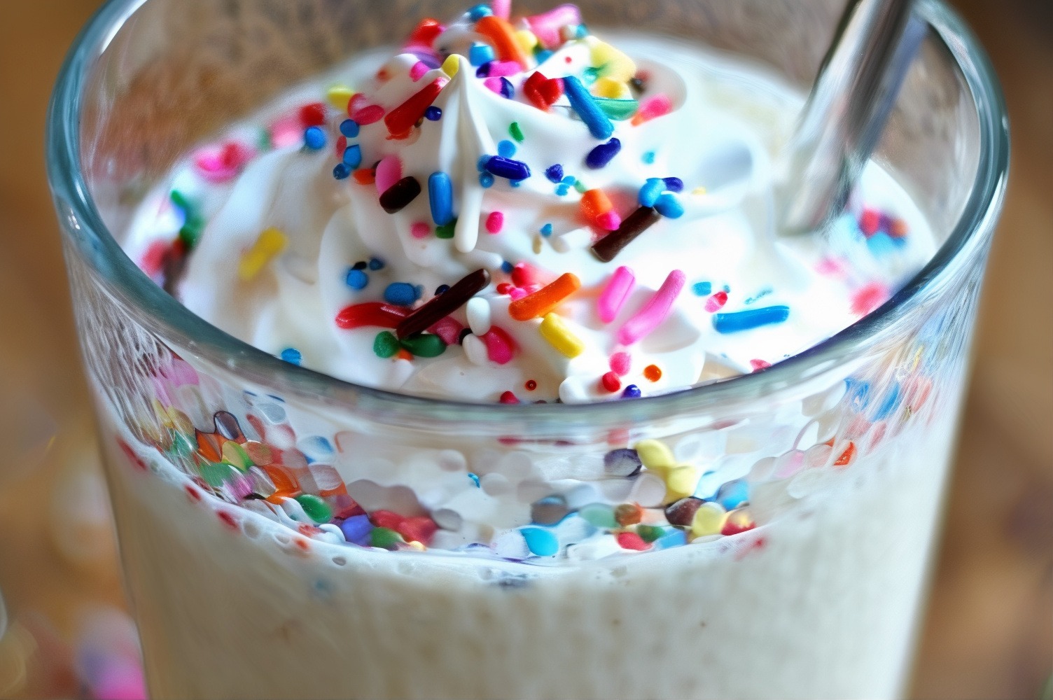 Who says birthdays should come only once a year? With my Birthday Cake Protein Shake, every morning can feel like a special celebration! It has all the fun flavors of a sprinkle-studded, birthday cake in one healthy fruit-sweetened smoothie!