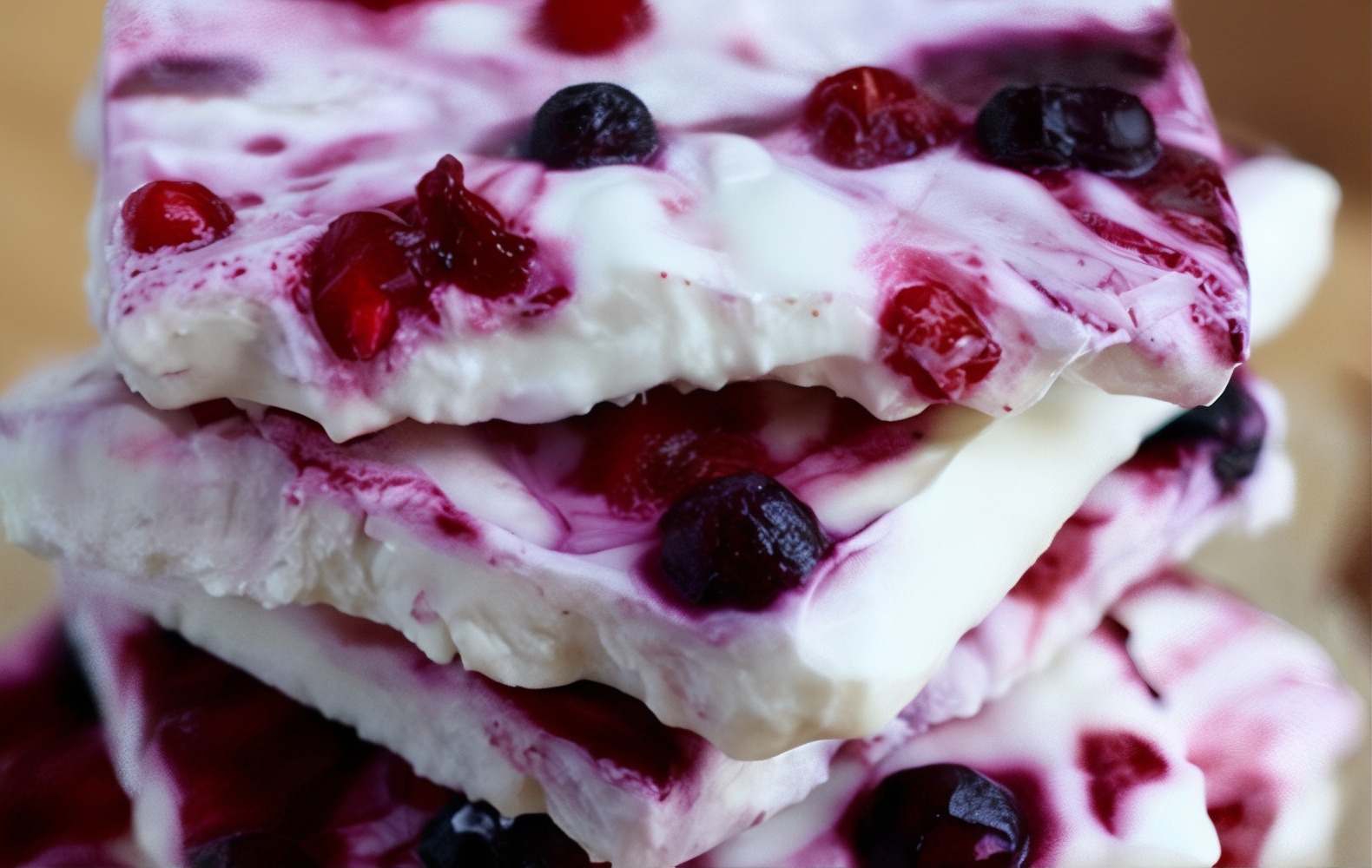 A refreshing, no bake frozen treat made with thick Greek yogurt, protein powder, juicy blueberries and vibrant pomegranate seeds. This protein-rich yogurt bark is creamy, lightly sweet, and packed with antioxidants - perfect as a healthy dessert,post-workout snack, or grab-and-go freezer treat.