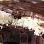 Sprinkle the coconut layer evenly over the thickened chocolate layer (shouldn't be completely set or the two layers will separate as they cool),