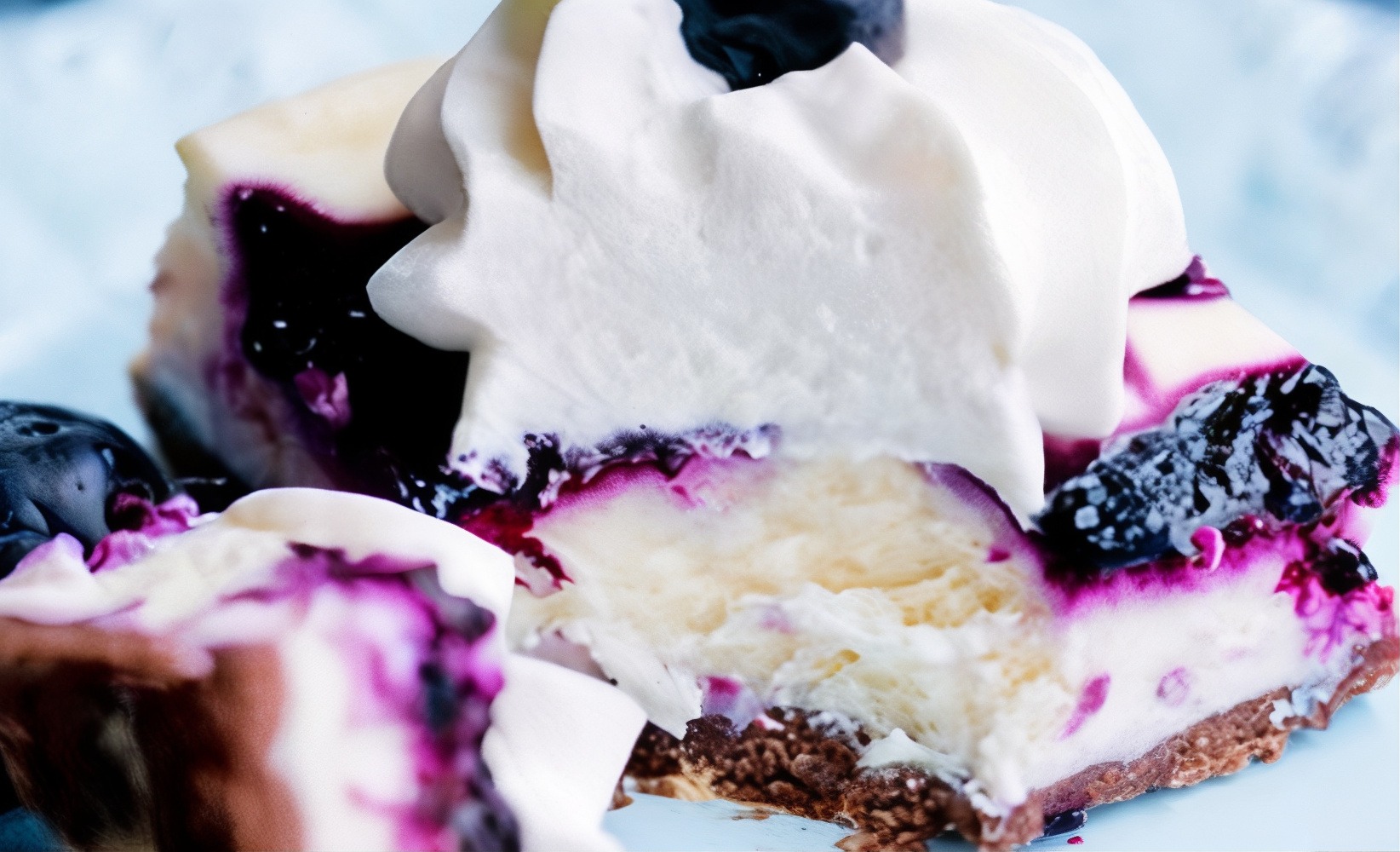 - Heat blueberries, honey, and lemon juice in a small saucepan over a low heat for 3-5 minutes until juicy and slightly thickened. Lightly mash to create a sauce. Take off heat, let cool then spoon dollops of the blueberry sauce over the yogurt layer and use a knife to swirl gently. Swirl only a few times to keep the pattern clean.Freeze the pan for 3 to 4 hours or until firm enough to slice. Lift out using parchment overhang and cut into 16 squares. Tip: Run the knife under hot water for cleaner cuts.Store in the fridge for up to 1 week or freezer up to 3 months. If fully frozen, let sit at room temperature 10 minutes before eating.