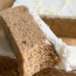 I describe these Lemon Frosted Protein Bars as a cross between lemon cake and a lemon brownie, with one exception – they are good for you!  These are simply the best homemade lemon protein bars! Perfectly sweet and tangy and made with wholesome ingredients and, unlike store-bought protein bars, contain no weird additives.