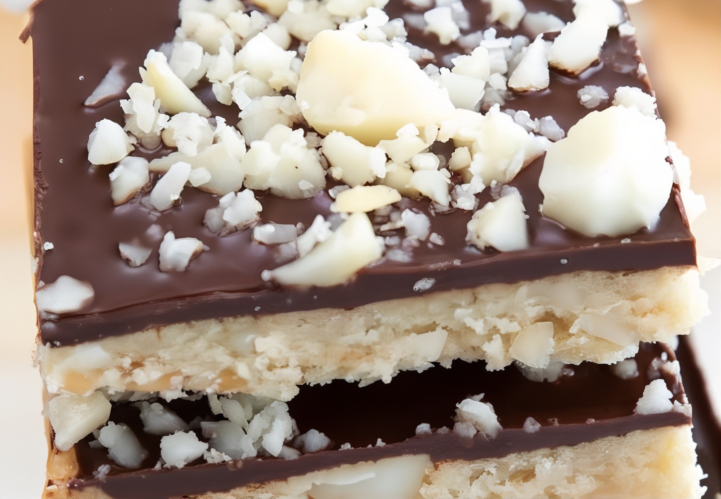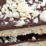 With a layer of chewy coconut and macadamia nut shortbread topped with chocolate, these bad boys are destined to become one of your favorite protein bars!