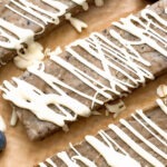 Keyword blueberry protein bars with white chocolate drizzle, clean eating dessert or snack, healthy blueberry protein bars, no bake blueberry protein bars, white chocolate blueberry protein bars