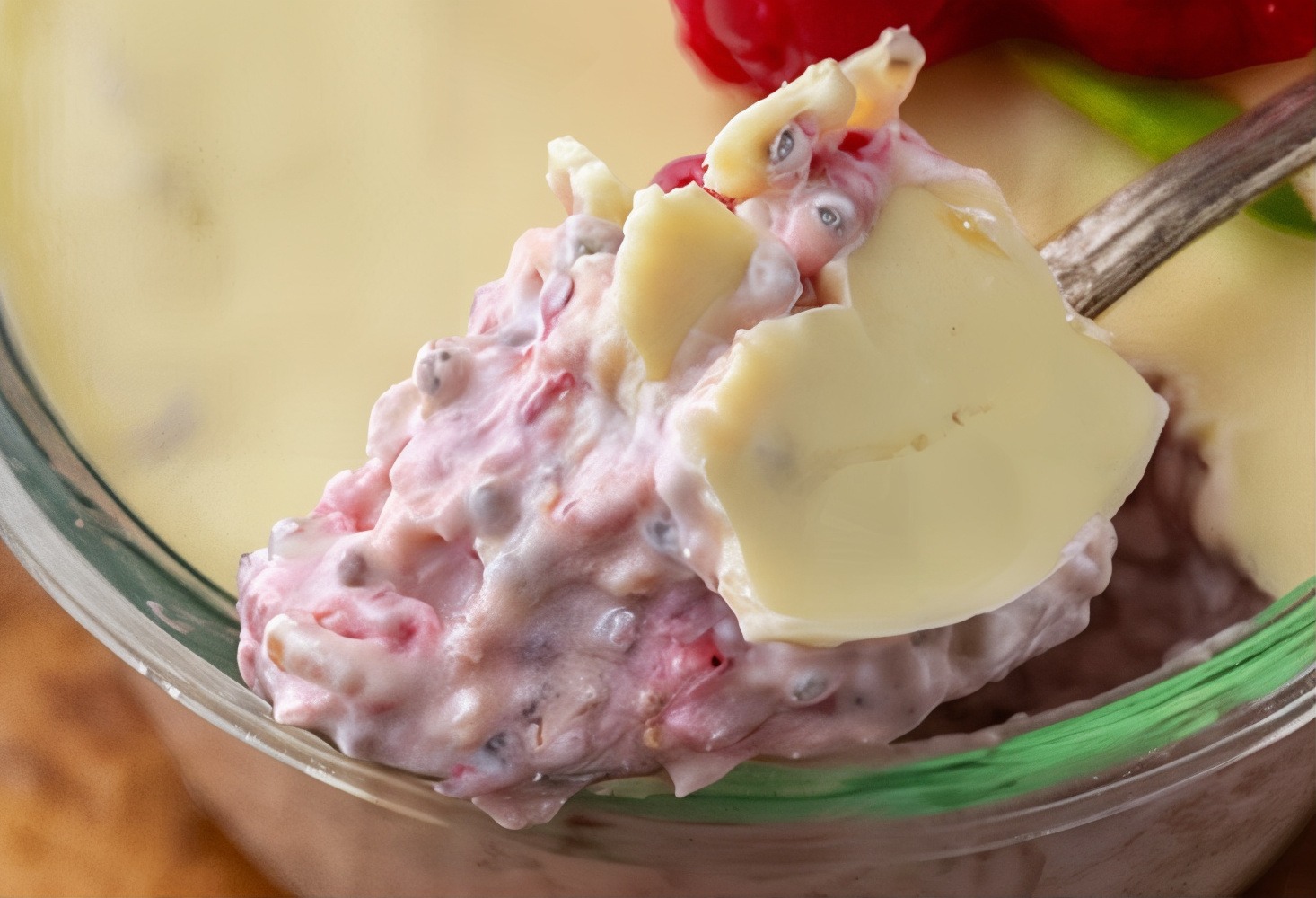 To capture that white chocolate flavour without excess sugar, this recipe uses white chocolate chips or a drizzle of melted white chocolate, just enough to feel indulgent while keeping things balanced. You get that familiar sweetness and creaminess without turning your breakfast into a sugar bomb. A spoonful of Greek yogurt or cottage cheese adds extra creaminess and another layer of protein, making the texture luxuriously thick and satisfying.